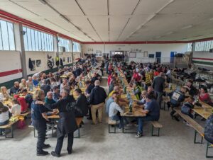 Ma l’emozione non si è fermata qui. Dopo la benedizione e il minuto di “rumore”, è stato il momento di condividere un pranzo conviviale, dove i partecipanti hanno potuto gustare prelibatezze realizzate dalla Pro-Casacastalda e scambiarsi aneddoti e esperienze vissute sulla strada. Il cibo delizioso e l’atmosfera festosa hanno reso il pranzo un momento di piacere e di condivisione, consolidando ancora di più il legame tra tutti gli appassionati di motociclismo.